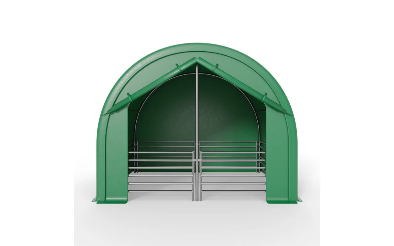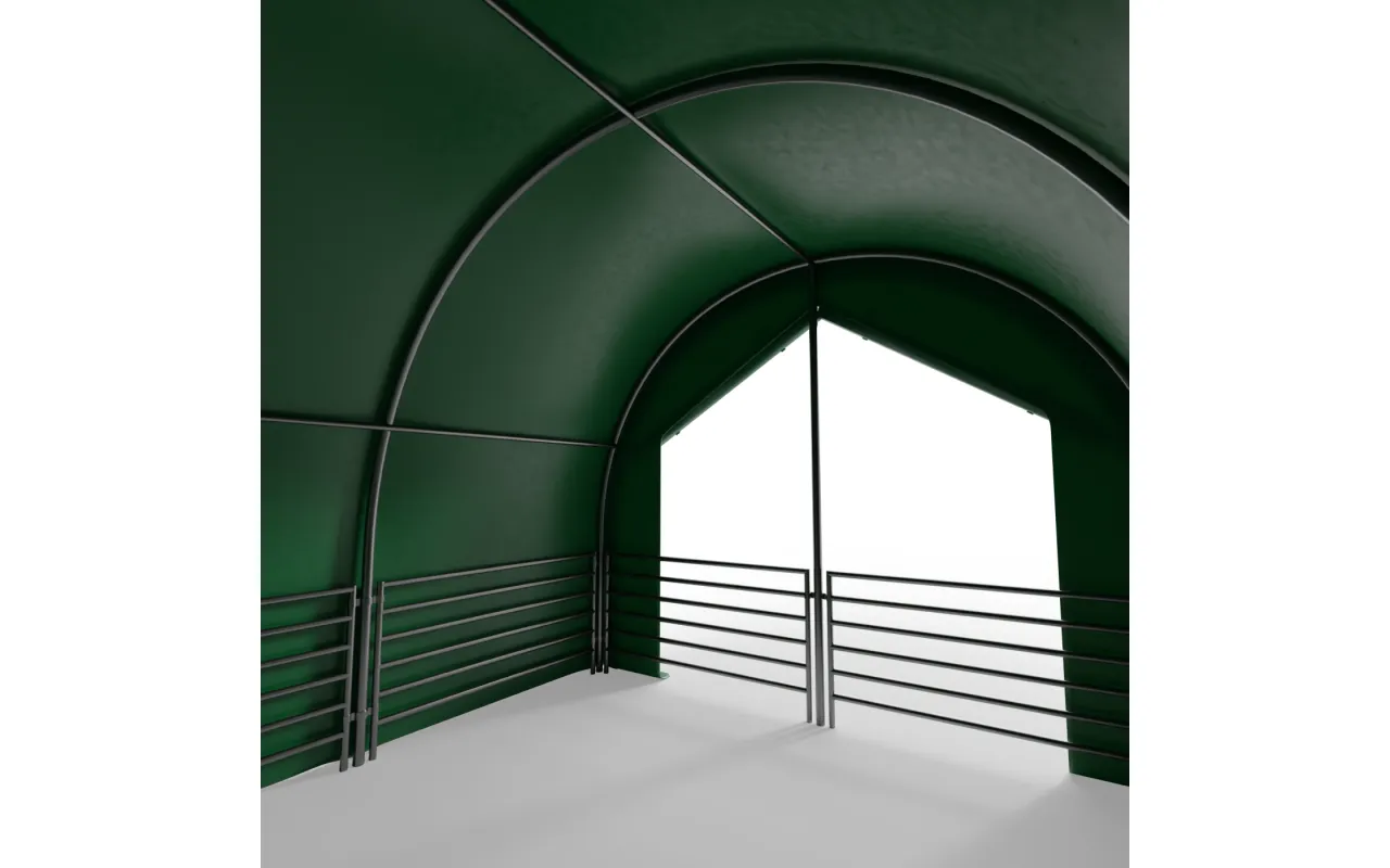 Predná stena pre výbeh pre zvieratá 4x4m PVC 750g/m² je hotový modul z PVC plachty, ktorý uzatvára vstup do ohrady a obmedzuje vplyv vetra, zrážok a chladu na priestor, v ktorom sa zvieratá zdržiavajú. Čelná stena montovaná na existujúcom ráme konštrukcie Gazelt, bez dodatočných nosných prvkov, predstavuje prirodzené doplnenie ohrady – nejde o samostatnú halu, ale o presne prispôsobený komponent systému. Vďaka Predná stena pre výbeh pre zvieratá 4x4m PVC 750g/m² zostáva vnútorný priestor suchší, lepšie chránený pred prievanom a jednoduchší na udržiavanie čistoty, čo sa premieta do vyššieho komfortu koní, hovädzieho dobytka, oviec, kôz, alpak aj lám, a to tak v poľnohospodárskych hospodárstvach, ako aj v agroturistických zariadeniach či sezónnych chovateľských stanovištiach.