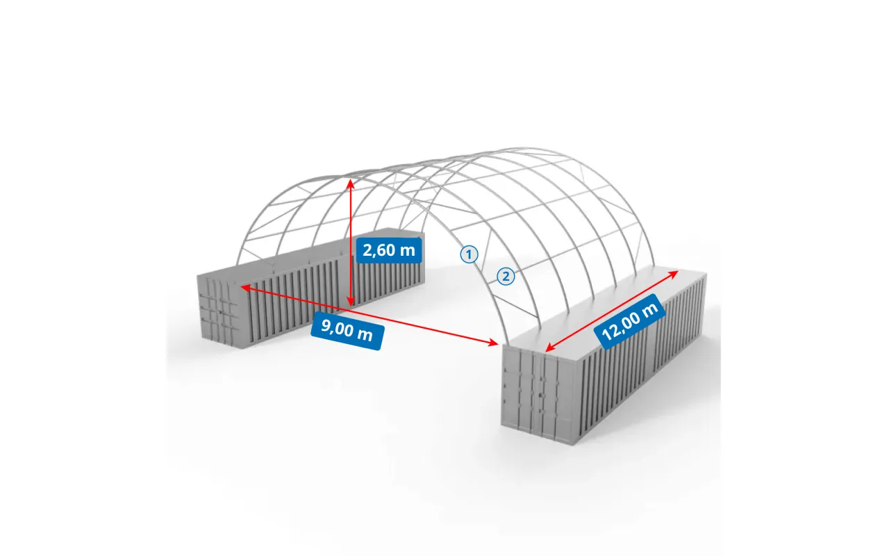 Kontajnerové prestrešenie 9,15x12 m je praktické stanové prekrytie navrhnuté na ochranu priestoru medzi kontajnermi. Je vhodné pre logistických spoločností, sklady aj stavenísk a spoľahlivo chráni pred dažďom, snehom a silným slnkom. kontajnerové prestrešenie 9,15x12 m je vyrobené z odolného PVC materiálu, čo zaručuje dlhodobé používanie, vysokú odolnosť a bezpečnosť. Kontajnerové prestrešenia PVC prispôsobíme vašej prevádzke – aj ako uzavreté riešenie so vjazdovú bránu alebo vstupné dvere. Rýchla montáž uľahčuje presun podľa potrieb – ozvite sa pre konzultáciu.