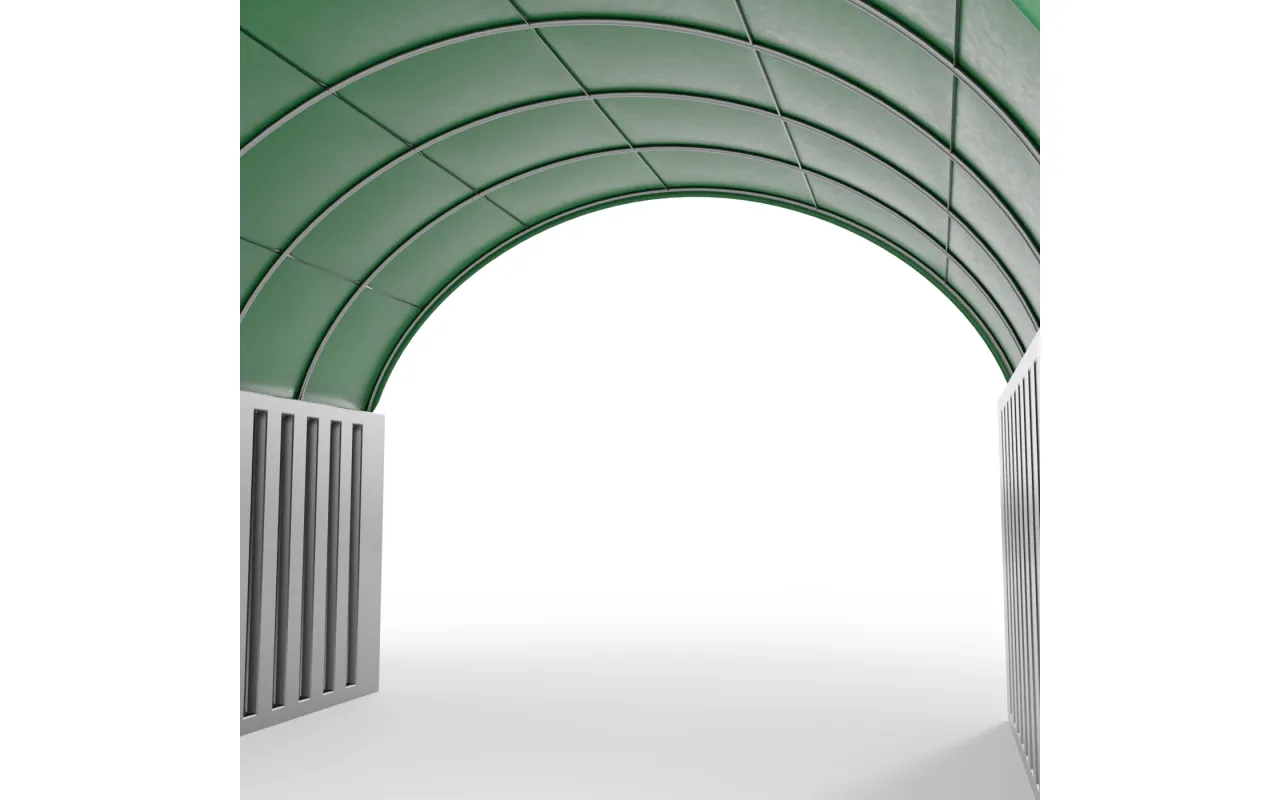 Konštrukcia Kontajnerové prestrešenie v zelenom vyhotovení 6x6 m PVC 900 g/m² sa vyznačuje použitím nosných rúr a spojovacích prvkov so zväčšeným priemerom, čo vedie k zvýšeniu pevnostných parametrov celého systému. V skutočnosti je srdcom našej konštrukcie oceľ, a preto sme použili za studena valcovanú konštrukčnú oceľ. Okrem toho sú prvky kostry perforované, čím sa eliminujú zvarové spoje, pretože použitie tejto technológie zabezpečuje najvyššiu odolnosť konštrukcie voči statickým a dynamickým zaťaženiam a zabraňuje možným deformáciám. Na ochranu oceľových komponentov kontajnerových prístreškov sme ich podrobili procesu galvanického zinkovania. Táto metóda poskytuje komplexnú ochranu proti korózii v interiéri aj exteriéri. Vďaka tomu majú oceľové rúry vysokú odolnosť voči koróznym procesom. Systém strešných a bočných výstuh pozostáva z oceľových lán, čo zabezpečuje stabilitu konštrukcie, ktorá sa nedeformuje a zostáva pevná počas celého obdobia používania. Tento systém zároveň chráni plachtu pred tlakom snehu a vetra. Vnútorný napínací systém je kľúčový pre kontajnerové prístrešky, pretože udržuje materiál v napätí, čím zabraňuje vzniku záhybov a hromadeniu vody na povrchu plachty. Vďaka tomu je hala lepšie chránená pred nepriaznivými poveternostnými podmienkami, ako sú silný vietor alebo intenzívne zrážky. Tento systém tiež prispieva k estetike stanu, zabezpečujúc mu bezchybný a profesionálny vzhľad.
