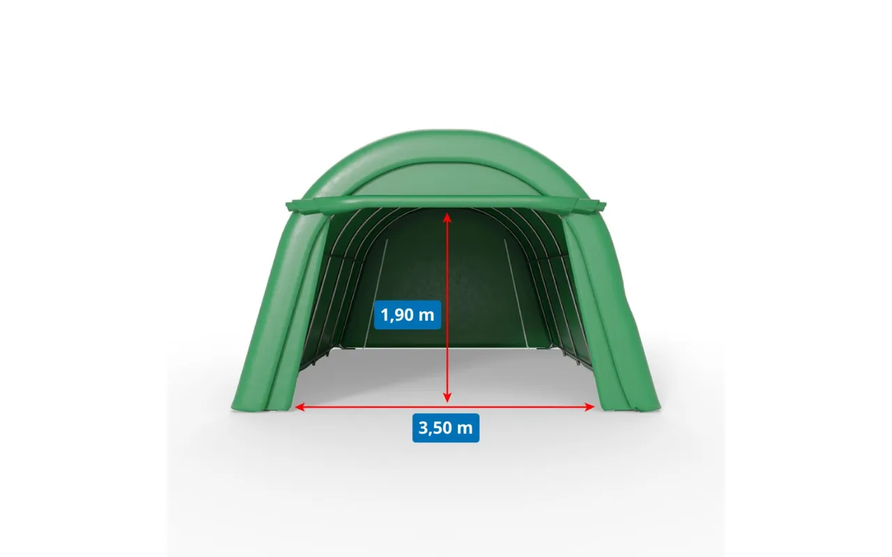 Plachtový garážový stan v zelenom vyhotovení 3,66x6,1 m je univerzálne riešenie pre rýchle prekrytie a ochranu techniky. garážový stan je praktický a odolný prístrešok pre vozidlá, poľnohospodárske stroje aj stavebné vybavenie. Pevná oblúková konštrukcia a kryt z PVC spoľahlivo chránia pred dažďom, snehom, vetrom a UV žiarením, čím zvyšujú bezpečnosť uskladnených predmetov. Jednoduchá montáž a možnosť premiestnenia robia zo plachtový garážový stan flexibilnú voľbu pre súkromné aj profesionálne použitie – vyžiadajte si ponuku.