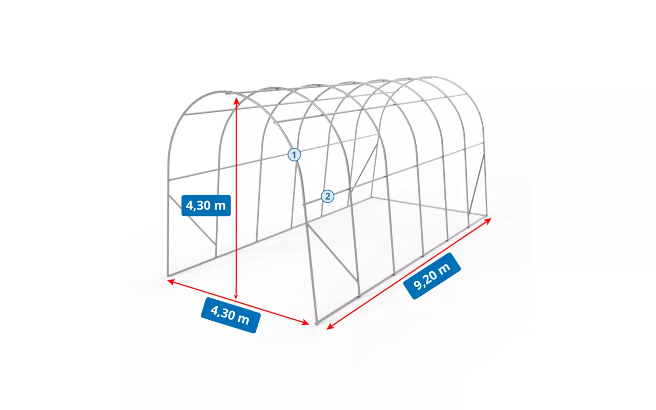 - Pevnosť konštrukcie sa zvýšila použitím rúr s väčším priemerom, čo zabezpečuje stabilitu aj v náročných poveternostných podmienkach.