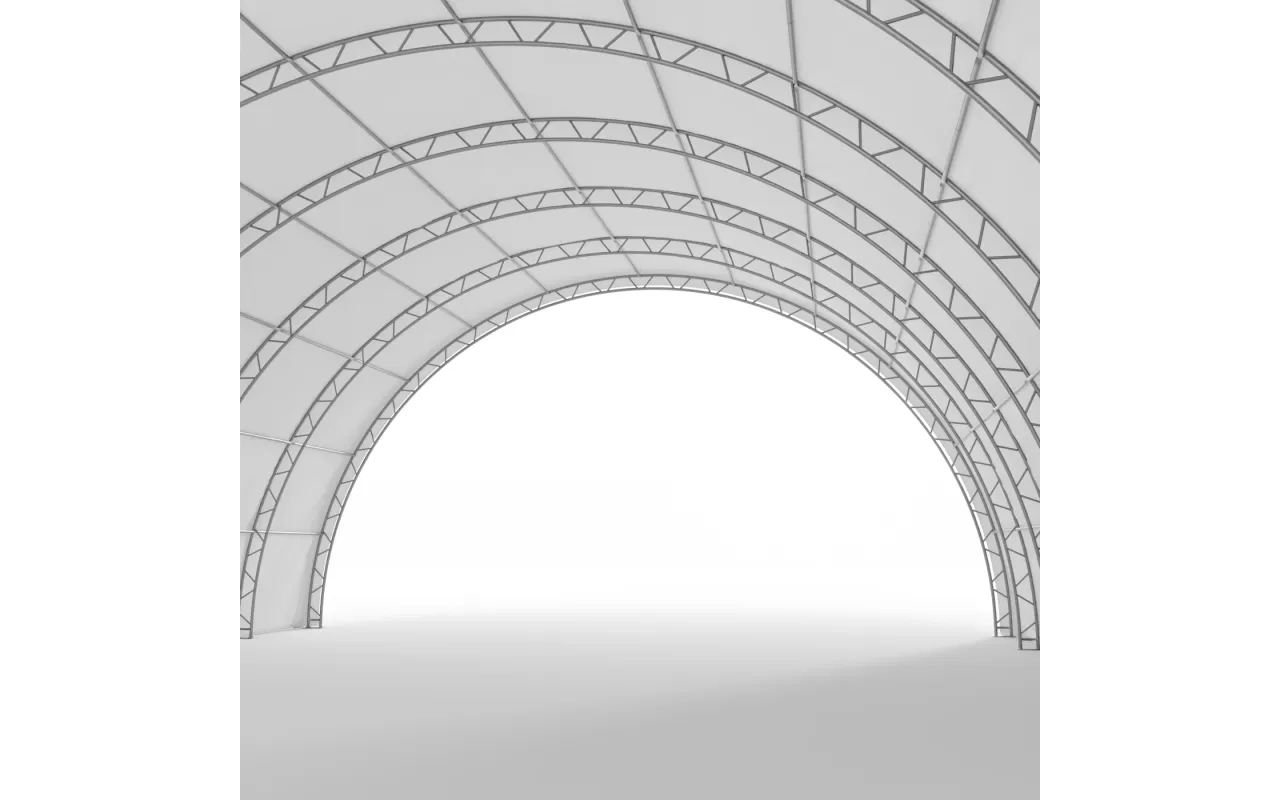 Oblúková hala 15,25x45,75 m PVC 750 g/m² je postavená na samonosnej oceľovej konštrukcii z oválnych alebo priehradových profilov, ktoré sú žiarovo zinkované pre maximálnu odolnosť voči korózii. Robustný rám nevyžaduje žiadne dodatočné vnútorné podpery, čo zachováva plnú funkčnosť vnútorného priestoru. Opláštenie je vyrobené z nehorľavej PVC plachty dostupnej v štandardnej verzii (750 g/m²) alebo zosilnenej (900 g/m²), ktorá poskytuje vysokú odolnosť voči ťahu, mechanickému poškodeniu, UV žiareniu, dažďu, snehu a vetru. Biela farba plachty podporuje prirodzené osvetlenie pracovného priestoru a zároveň obmedzuje prehrievanie interiéru. Modulárna konštrukcia navyše umožňuje budúce rozšírenie haly, vďaka čomu je riešením flexibilným a dlhodobým – či už potrebujete priestor na niekoľko sezón, alebo ako trvalé logistické zázemie.