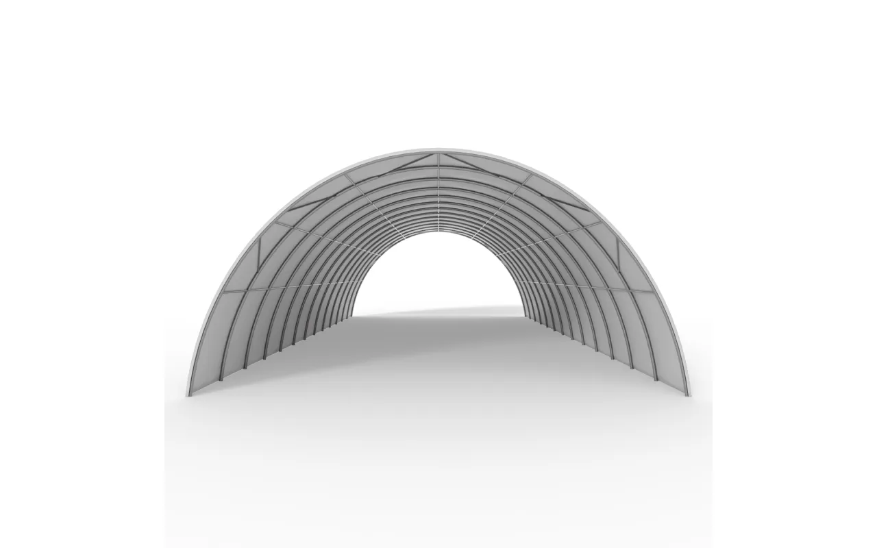 Univerzálna plachtová hala 12,2x24 m s odolným opláštením PVC 750 g/m² je určená pre farmárov aj firmy, ktoré potrebujú spoľahlivý sklad. Oválna konštrukcia zaisťuje stabilitu a ťažko horľavý plášť chráni obsah pred slnkom, vetrom a dažďom. Vďaka samonosnej konštrukcii hala nevyžaduje základy a dá sa montovať na ľubovoľnom teréne. Hodí sa ako sezónne prestrešenie aj ako trvalý skladový objekt.