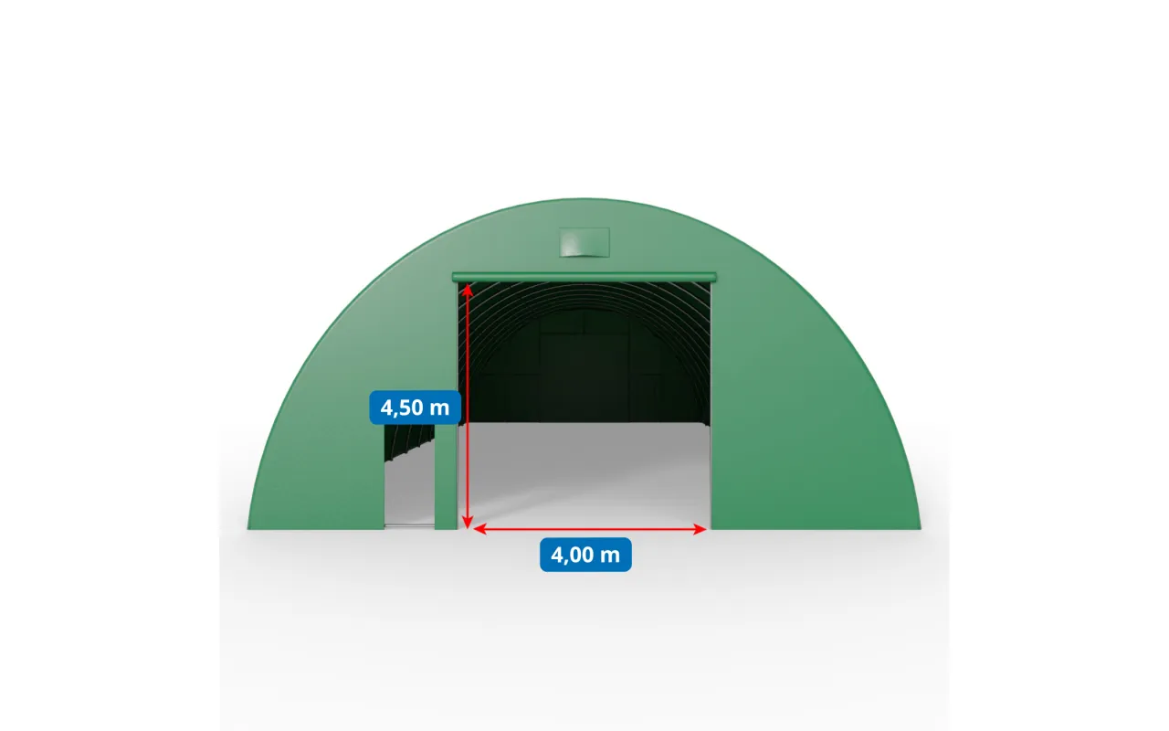Hala 12,2×24 m v zelenom vyhotovení spája technické parametre s čistým vzhľadom areálu. Opláštenie PVC 900 g/m² je pripravené na náročné počasie, rám z oválnych profilov je odolný voči deformáciám. Predná stena s ručnou bránou na lano a plná zadná stena uzatvárajú priestor pre bezpečné skladovanie. Určené na montáž na základových pätkách. Zavolajte – poradíme s výberom a konfiguráciou.