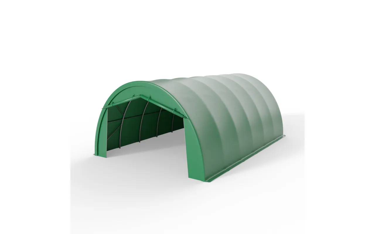 Zelená hala so šírkou 6,1 m a dĺžkou 12,8 m je praktická pre menšie prevádzky – pre farmárov, záhradníkov aj firmy na uloženie techniky či zásob. PVC plachta 750 g/m² odoláva vlhkosti aj UV, predná brána zips umožní otvoriť celú stenu. Oválny oceľový profil zvyšuje stabilitu, montáž môže byť aj bez základov – stačia kolíky a spevnený podklad. Potrebujete rýchle riešenie? Kontaktujte nás.