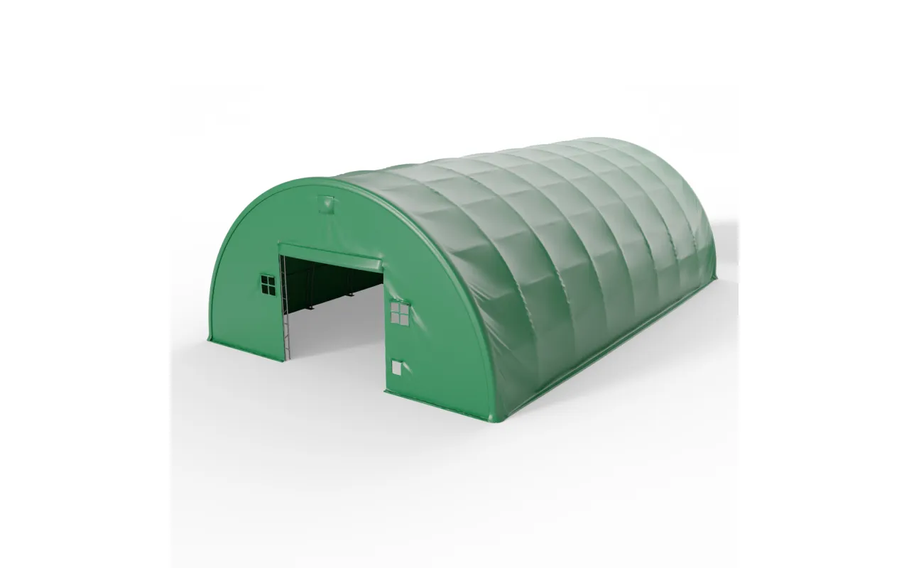 Zosilnená oblúková stanová hala 15,25x30,5m PVC 750g/m² zelená verzia vyniká výnimočným materiálom, ktorý je špeciálne prispôsobený náročným klimatickým podmienkam panujúcim na Slovensku. Použitie vysoko kvalitného PVC materiálu, ktorého pevnosť je výsledkom hustého tkania vlákien, zaručuje odolnosť voči zaťaženiu spôsobenému snehom a vetrom. UV žiarenie spôsobuje degradáciu materiálov, z ktorých sú vyrobené plachty, a preto sme aplikovali dodatočnú lamináciu povrchu krytiny, čím sme vytvorili ochrannú vrstvu proti ultrafialovému žiareniu. Vďaka tomu sa naši zákazníci nemusia obávať, že sa plachta v priebehu rokov začne lámať alebo opotrebovávať. Zhrnuté – použitie PVC materiálu s gramážou 750 g alebo 900 g /m² spolu s ochranným povlakom zabezpečuje, že sa na plachte ťažšie usádza špina a zároveň výrazne uľahčuje jej čistenie pomocou vysokotlakových čističov. Táto investícia prispieva k dlhodobému zachovaniu estetického vzhľadu stanu a ochrane pred poškodením. Využitie kvalitnej plachty ponúka kľúčové vlastnosti, ako sú nehorľavosť, vodotesnosť a mrazuvzdornosť, čo z nej robí nevyhnutné riešenie pre mnohé odvetvia.