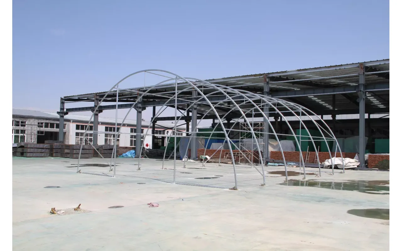 Konštrukcia stanu Plachtová hala 9,15x12 m PVC 900 g/m² vyniká použitím nosných rúrok a spojovacích prvkov so zväčšeným priemerom, čo priamo zvyšuje pevnostné parametre celého systému. Srdcom našej konštrukcie je oceľ, preto sme použili za studena valcovanú konštrukčnú oceľ. Prvky rámu sú navyše perforované, čím sa eliminujú zvary – táto technológia poskytuje najvyššiu odolnosť konštrukcie voči statickému aj dynamickému zaťaženiu a zabraňuje potenciálnym deformáciám. Na ochranu oceľových komponentov oblúkových stanov sme použili proces galvanického zinkovania, ktorý zaisťuje komplexnú antikoróznu ochranu v interiéri aj exteriéri. Vďaka tomu sú oceľové rúrky vysoko odolné voči korózii. Systém strešného a bočného napínania je tvorený oceľovými lankami, čo zabezpečuje stabilitu konštrukcie bez deformácií počas celej doby používania. Tento systém zároveň chráni plachtu pred tlakom snehu a vetra. Vnútorný systém napínania je kľúčovým prvkom v Plachtová hala 9,15x12 m PVC 900 g/m², pretože udržiava materiál napnutý a zabraňuje tvorbe záhybov a vodných kaluží na povrchu plachty. Vďaka tomu je hala lepšie chránená pred nepriaznivým počasím, ako je silný vietor alebo dážď. Tento systém zároveň prispieva k estetike stanu a zaisťuje mu upravený a profesionálny vzhľad.