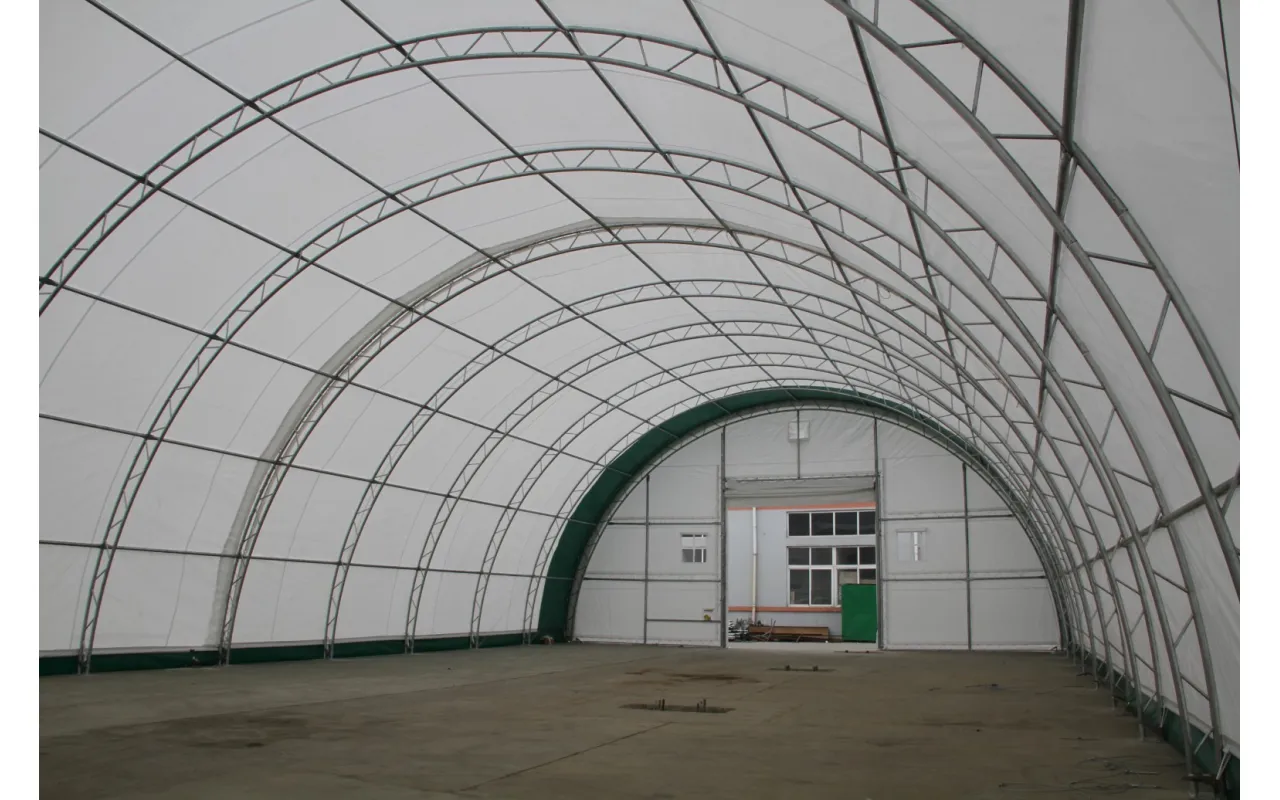 Riešenie navrhnuté na celoročnú prevádzku v priemysle aj poľnohospodárstve. Krytie z PVC 900 g/m² výborne odoláva intenzívnym zrážkam, silnému vetru aj UV žiareniu a oceľová priehradovinová konštrukcia udržiava tuhosť aj pri vysokom zaťažení. Model 15,25×36,6 m je vybavený zadnou stenou a čelom s ručne ovládanou bránou na lano. Celok vyžaduje montáž na pevných na základových pätkách. Ak chcete nahradiť provizóriá stabilným riešením na roky, kontaktujte nás a pripravíme odporúčanie.