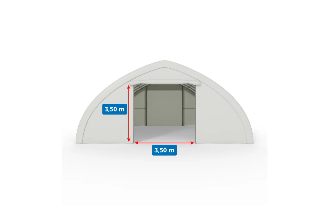 Hala Gazelt 9,76×26 m je spoľahlivé riešenie na skladovanie materiálov, strojov alebo poľnohospodárskej produkcie. Konštrukcia z oválnych oceľových profilov poskytuje potrebnú tuhosť a biela krycia vrstva PVC plachta s gramážou 750 g/m² chráni interiér pred zrážkami aj UV žiarením. Veľká úžitková plocha a výška v hrebeni uľahčujú manipuláciu so strojmi a prehľadnú logistiku. Hala má zadnú stenu a prednú stenu s ručne rolovanou bránou na lano. Objednajte alebo sa poraďte s poradcom, aby ste zvolili správne kotvenie.
