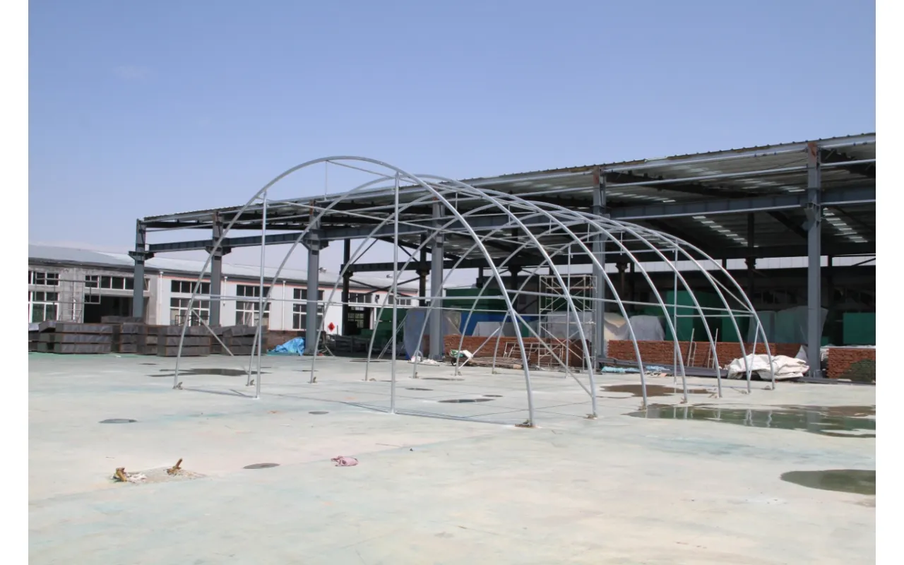 Konštrukcia stanu Plachtová hala 9,15x12 m PVC 750 g/m² vyniká použitím nosných rúrok a spojovacích prvkov so zväčšeným priemerom, čo priamo zvyšuje pevnostné parametre celého systému. Srdcom našej konštrukcie je oceľ, preto sme použili za studena valcovanú konštrukčnú oceľ. Prvky rámu sú navyše perforované, čím sa eliminujú zvary – táto technológia poskytuje najvyššiu odolnosť konštrukcie voči statickému aj dynamickému zaťaženiu a zabraňuje potenciálnym deformáciám. Na ochranu oceľových komponentov oblúkových stanov sme použili proces galvanického zinkovania, ktorý zaisťuje komplexnú antikoróznu ochranu v interiéri aj exteriéri. Vďaka tomu sú oceľové rúrky vysoko odolné voči korózii. Systém strešného a bočného napínania je tvorený oceľovými lankami, čo zabezpečuje stabilitu konštrukcie bez deformácií počas celej doby používania. Tento systém zároveň chráni plachtu pred tlakom snehu a vetra. Vnútorný systém napínania je kľúčovým prvkom v Plachtová hala 9,15x12 m PVC 750 g/m², pretože udržiava materiál napnutý a zabraňuje tvorbe záhybov a vodných kaluží na povrchu plachty. Vďaka tomu je hala lepšie chránená pred nepriaznivým počasím, ako je silný vietor alebo dážď. Tento systém zároveň prispieva k estetike stanu a zaisťuje mu upravený a profesionálny vzhľad.
