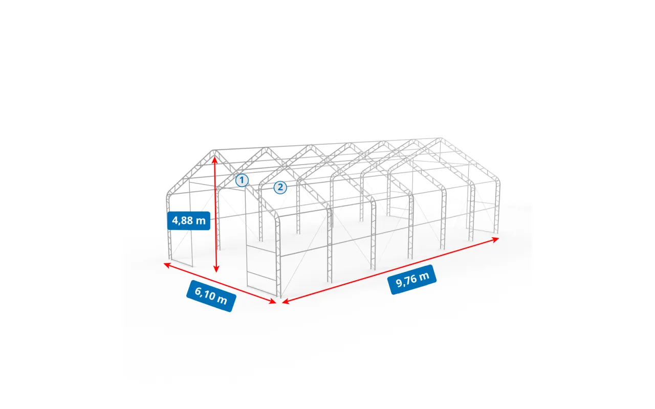 Výhody a aplikácie Stanová hala so sedlovou strechou 6,1x9,76 m PVC 750 g/m²