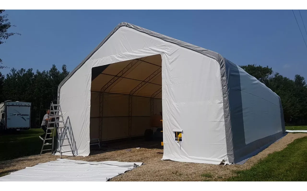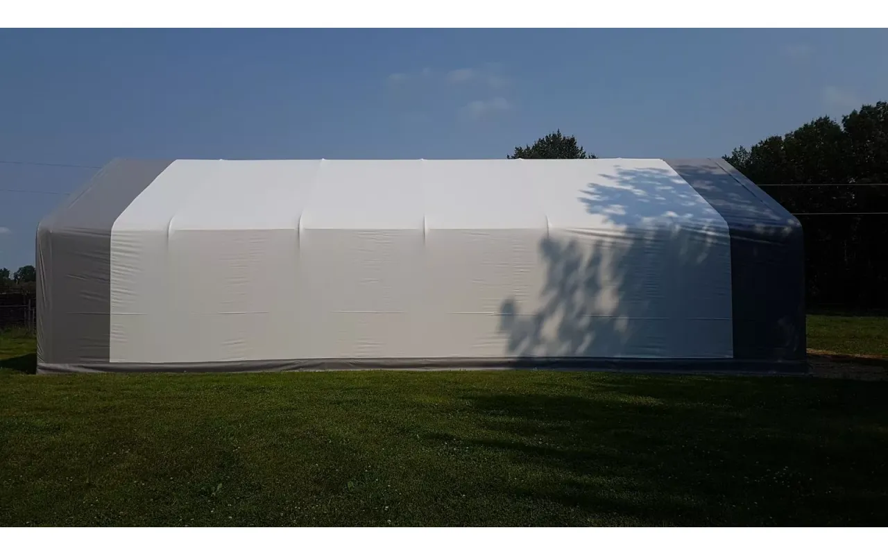Konštrukcia so sedlovou strechou s vysokými bočnými stenami umožňuje efektívne využitie priestoru po celej dĺžke stien. stanová hala so sedlovou strechou 9,15x24,4 m z PVC plachta s gramážou 900 g ponúka zvýšenú odolnosť voči extrémnemu počasiu a stabilnú prevádzku počas celého roka. strmá strešná konštrukcia účinne odvádza sneh a dážď a chráni pred preťažením. Rýchla montáž z nej robí flexibilné expresné riešenie pre sklad, farmu aj priemysel.