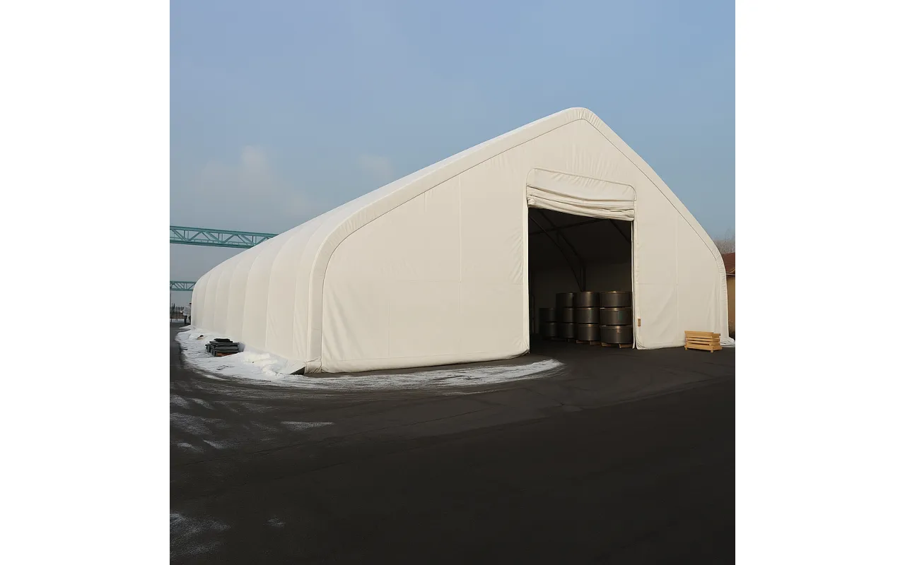 Konštrukcia stien haly so sedlovou strechou s vysokými bočnými stenami umožňuje efektívne využitie skladovej plochy pri stenách. stanová hala so sedlovou strechou 21,35x45,75 m je navrhnutá pre priemyselného odvetvia, poľnohospodárstvo aj skladovanie. strmá strešná konštrukcia z PVC so zvýšenou gramážou 900 g/m² zabezpečuje správny odvod snehu a dažďa a zvyšuje odolnosť voči zaťažením extrémnym počasím. stanová hala so šikmou strechou 21,35x45,75 m je praktická aj vizuálne zladená a výborne poslúži ako skladový stan.