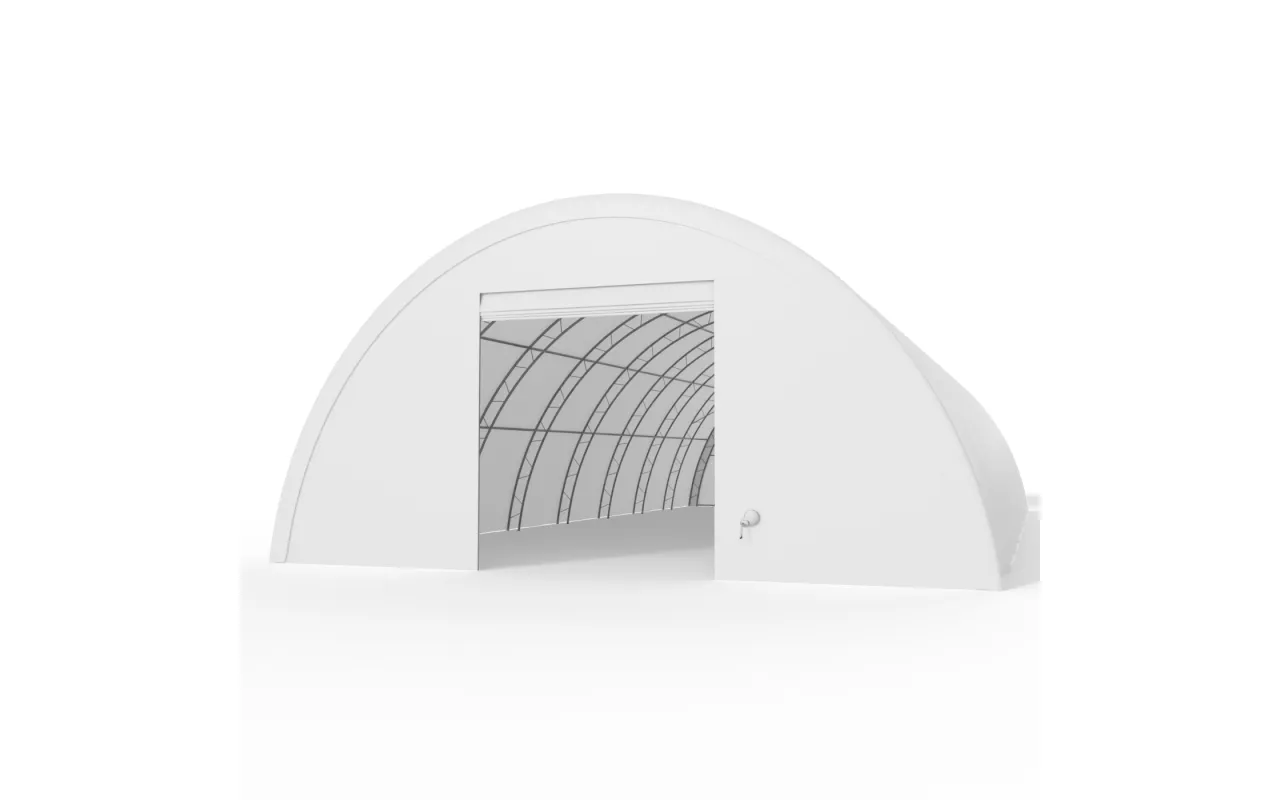 Obojstranná stena s rolovacou bránou, určená pre tunelové haly so šírkou 12 m. Tvorí ju odolný oceľový rám a opláštenie z plachty PVC 750 g/m². Umožňuje pohodlný vstup do haly a účinne chráni pred vetrom, zrážkami aj nečistotami. Montáž prebieha bez základov. Kontaktujte nás pre kompatibilitu a cenu.