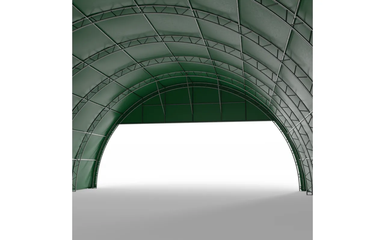Štítový kryt s rámom pre oblúkovú halu 12 m v zelenom vyhotovení PVC 900 g/m²