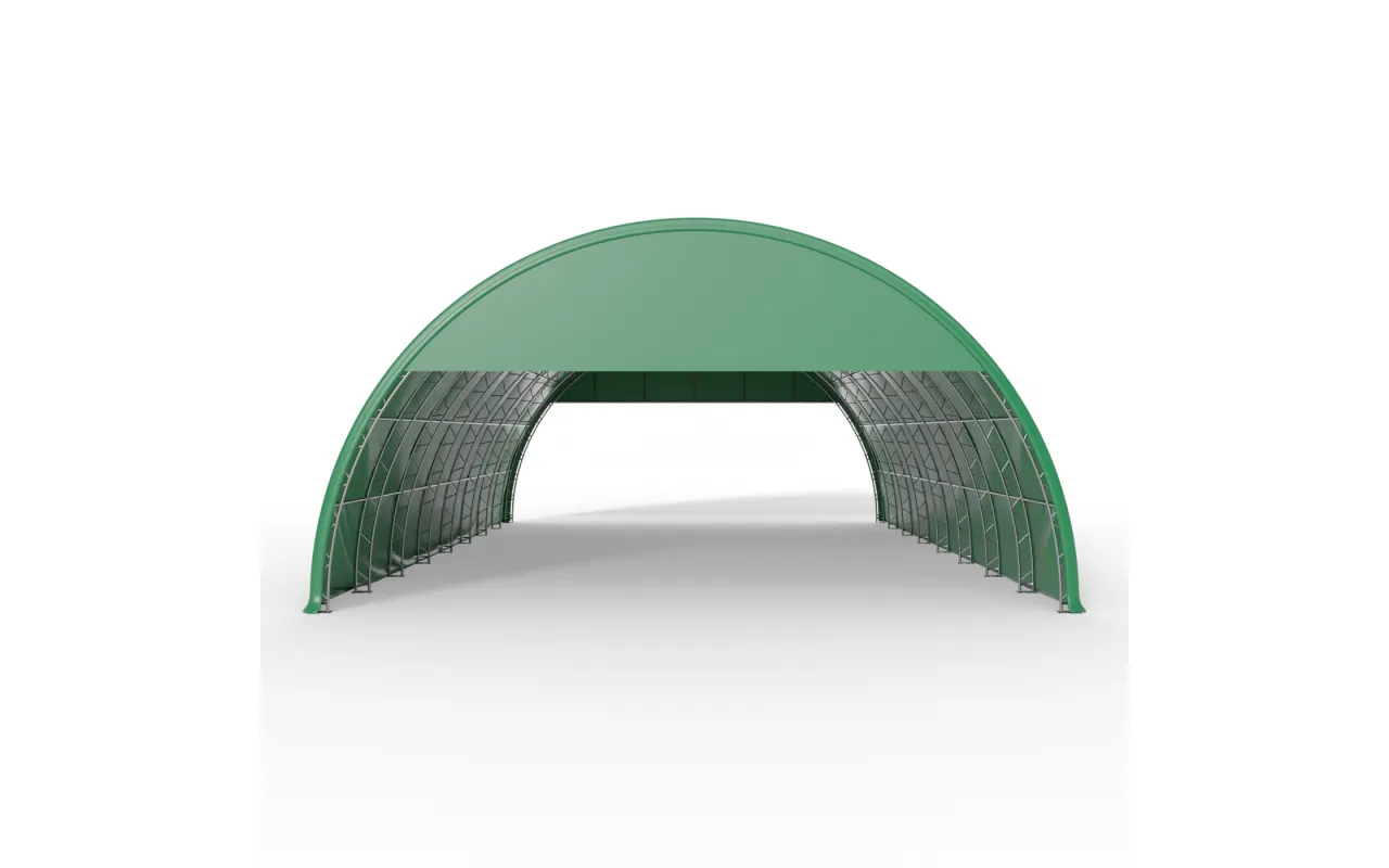 Štítový kryt s rámom pre oblúkovú halu 15 m v zelenom vyhotovení PVC 750 g/m² je praktické riešenie na čiastočné zakrytie oblúkovej haly spredu alebo zozadu. Namiesto plnej steny chráni hornú časť štítu a zabezpečuje ochranu interiéru pred vetrom, dažďom a prachom. Tento typ riešenia je ideálny tam, kde chceme mať tovar v bezpečí, ale zároveň zachovať voľný prístup vzduchu alebo rýchly vstup do haly. Štítový kryt s rámom pre oblúkovú halu 15 m v zelenom vyhotovení PVC 750 g/m² zvyšuje funkčnosť konštrukcie bez toho, aby obmedzovala jej flexibilitu – najmä pri sezónnom skladovaní úrody, strojov či stavebných materiálov.