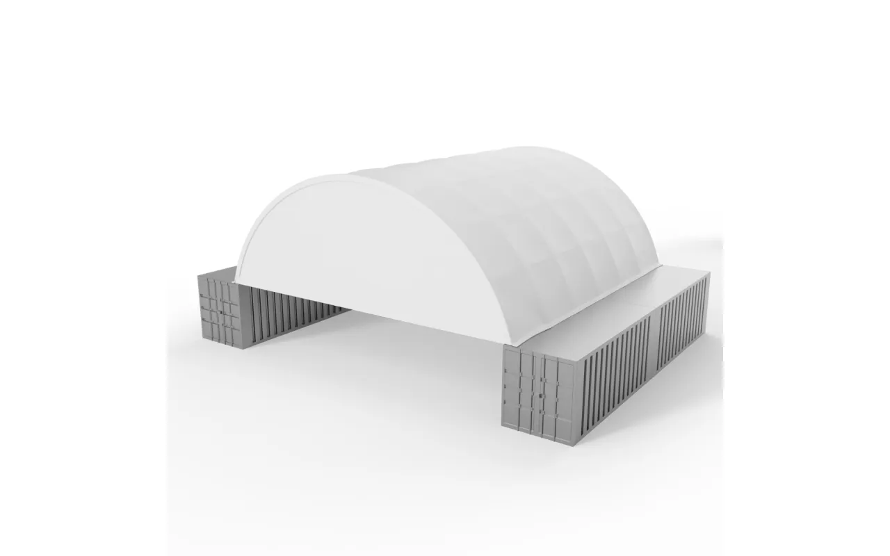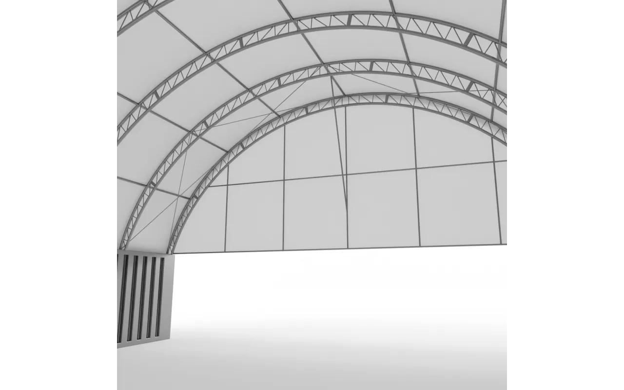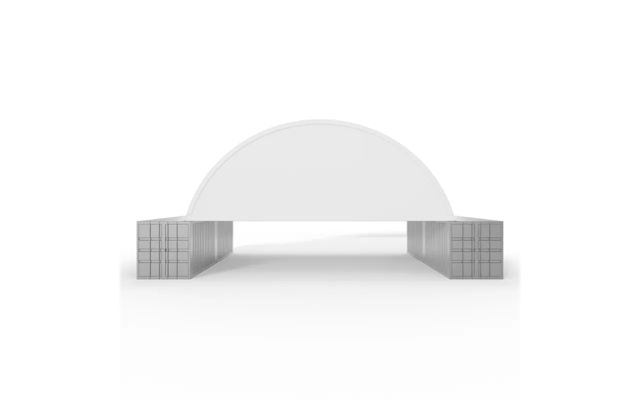 Štítový kryt s rámom pre prestrešenie zosilneného 12 m PVC 750 g/m² je dostupná v dvoch konštrukčných variantoch – bez rámu alebo s rámom – čo umožňuje jej prispôsobenie konkrétnym potrebám používateľa a rozsahu prevádzky. Clony bez rámu sú ľahké, kompaktné riešenia montované priamo na oblúk prístrešku – ideálne pre menšie tunely a sezónne využitie. Clony s rámom majú samostatnú, stabilnú oceľovú konštrukciu, ktorá zabezpečuje vyššiu pevnosť a je vhodná aj do veľmi náročných poveternostných podmienok. Bez ohľadu na zvolený variant môže byť Štítový kryt s rámom pre prestrešenie zosilneného 12 m PVC 750 g/m² namontovaná na prednej alebo zadnej strane prístrešku, v závislosti od usporiadania priestoru alebo logistického plánu.
