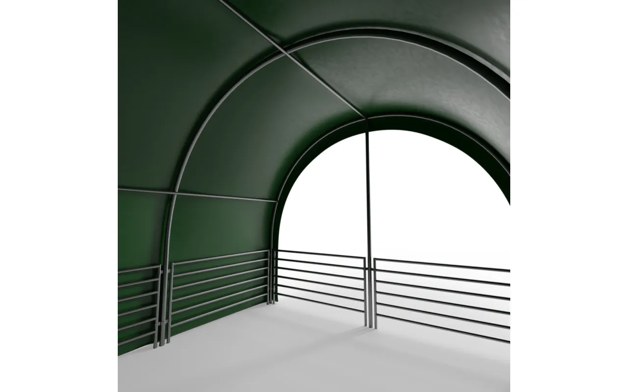Prístrešok pre zvieratá 4x4 m je moderný prístrešok pre zvieratá, navrhnutý na stabilné podmienky chovu a bezpečnosť zvierat. Je vhodná pre poľnohospodárskych podnikov, chovné areály aj súkromné hospodárstva, kde je dôležitý welfare a predvídateľná prevádzka. prístrešok pre zvieratá 4x4 m poskytuje ochranu pred dažďom, vetrom aj intenzívnym slnkom. Hrubá plachta PVC plachta s gramážou 750 g/m² a žiarovo pozinkované oceľové prvky zvyšujú životnosť a odolnosť voči vonkajším vplyvom. Jednoduchá montáž/demontáž umožňuje rýchle prispôsobenie pre rôzne druhy chovu. stany pre chov zvierat vytvárajú priestor na výbeh, pasenie a odpočinok. Požiadajte o cenovú ponuku a dostupnosť.