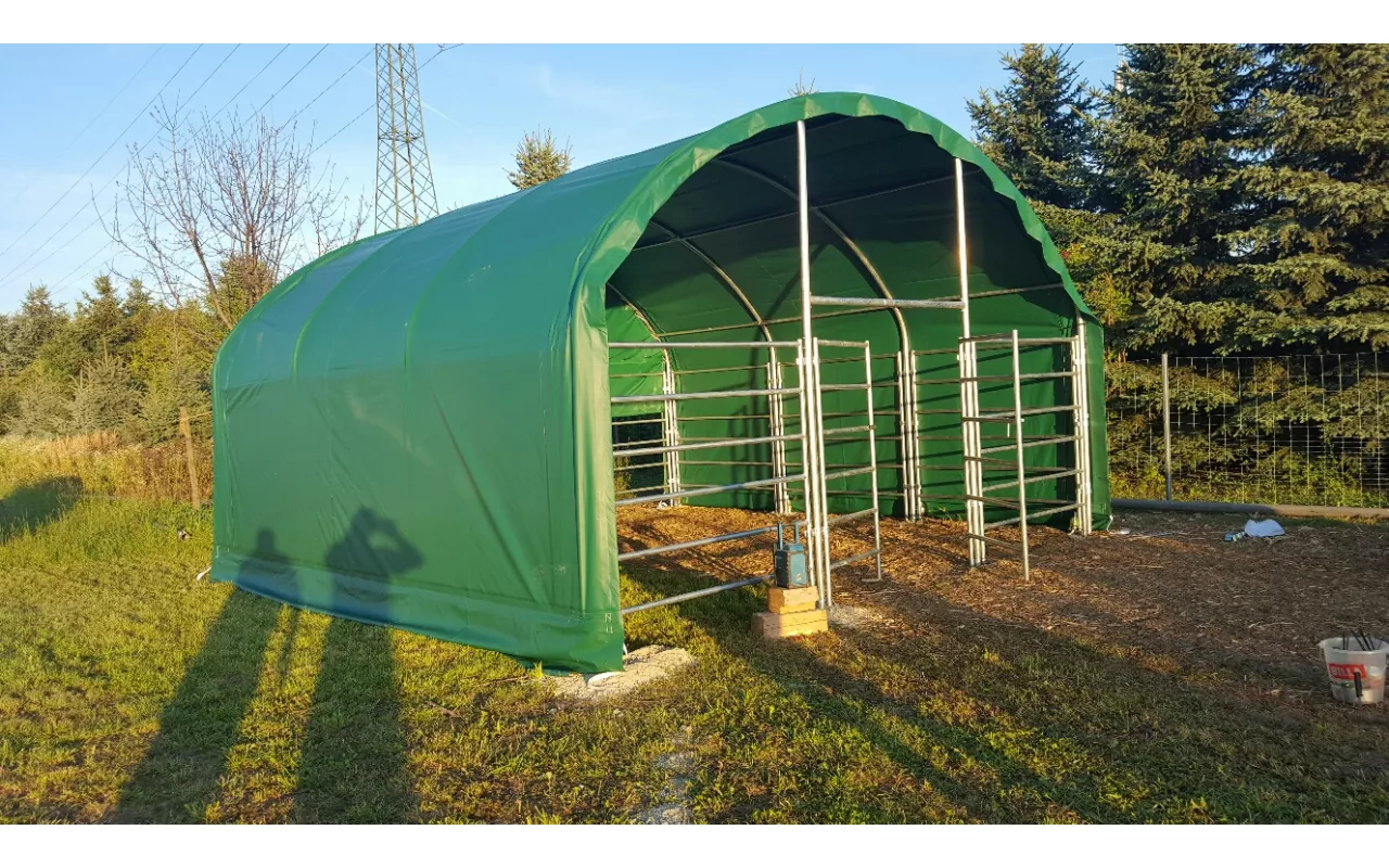 Prístrešok pre zvieratá 6x6 m je odolný prístrešok pre zvieratá navrhnutý na stabilné podmienky chovu a bezpečnú prevádzku. Je vhodný pre poľnohospodárskych podnikov, chovné strediská aj súkromné pozemky so zameraním na welfare zvierat. Poskytuje ochranu pred dažďom, vetrom a silným slnkom a zároveň pomáha udržať zvieratá v lepšom komforte počas celej sezóny. PVC plachta s gramážou 900 g/m² spolu so žiarovo pozinkovanými oceľovými prvkami zvyšuje odolnosť a životnosť. Jednoduchá montáž a demontáž umožňuje rýchlu zmenu využitia pre dobytok, ovce, kozy, kone, alpaky aj hydinu. stany pre chov zvierat vytvárajú priestor na výbeh, pasenie a oddych.