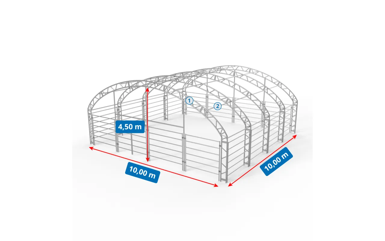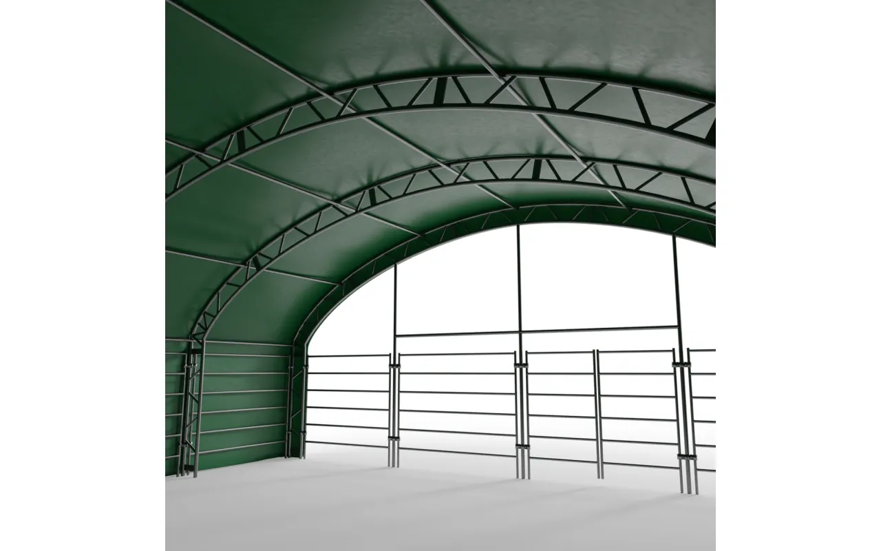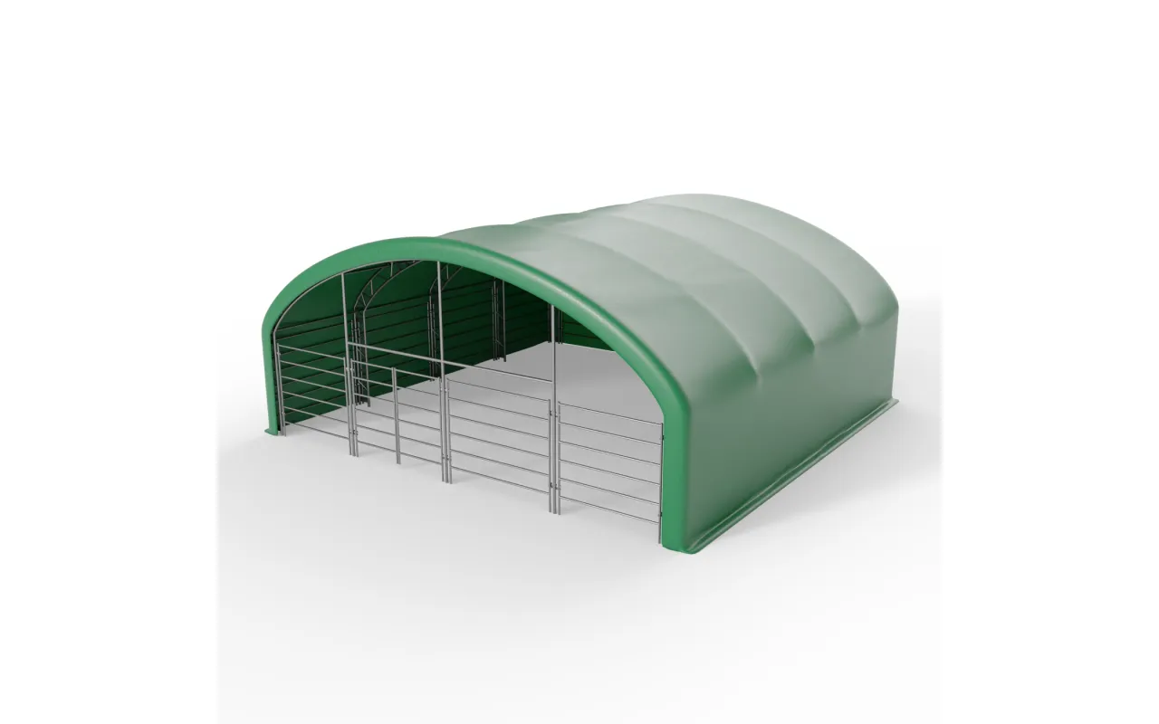Prístrešok pre zvieratá 10x10 m je moderné stanové riešenie pre stabilné podmienky chovu a bezpečnosť zvierat. Vďaka dvojitej priehradovine poskytuje vyššiu tuhosť a odolnosť, čo z nej robí vhodnú voľbu pre poľnohospodárskych podnikov, chovné strediská aj súkromné hospodárstva. Plachta PVC plachta s gramážou 750 g/m² spoľahlivo chráni pred dažďom, vetrom a ostrým slnkom, takže zvieratá majú úkryt v každom počasí. Žiarovo zinkované oceľové prvky predlžujú životnosť a zvyšujú odolnosť voči vonkajším vplyvom. Rýchla montáž umožňuje nasadenie pre dobytok, ovce, kozy, kone, alpaky aj hydinu; k dispozícii je priestor na výbeh, pasenie a oddych – požiadajte o ponuku.