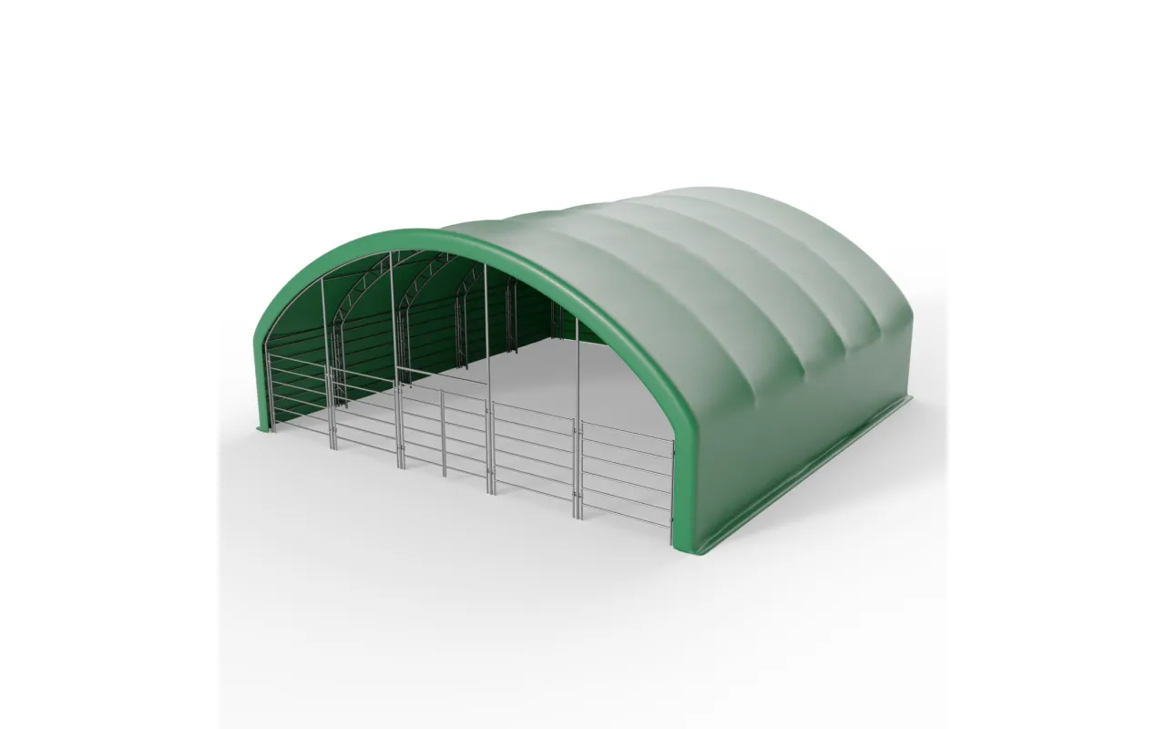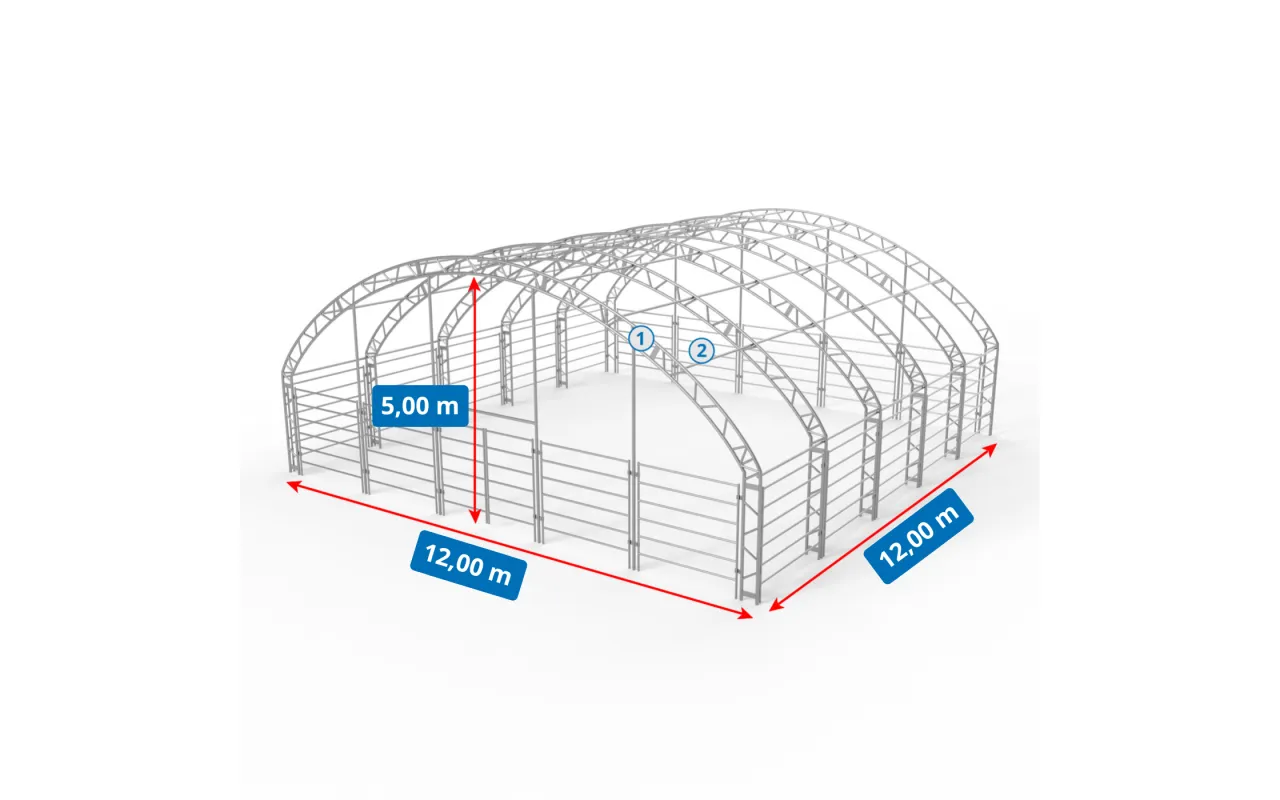 Prístrešok pre zvieratá 12x12 m je moderné stanové riešenie pre optimálne podmienky chovu a bezpečnosť zvierat. Dvojitá priehradovina zvyšuje stabilitu a odolnosť, takže je vhodná pre poľnohospodárskych podnikov, chovné areály aj súkromné pozemky zamerané na welfare. Konštrukcia s plachtou PVC plachta s gramážou 750 g/m² chráni pred dažďom, vetrom aj prudkým slnkom a poskytuje spoľahlivý úkryt počas celého roka. Žiarovo zinkované oceľové prvky zabezpečujú dlhú životnosť a ochranu proti korózii. Jednoduchá montáž/demontáž umožňuje rýchle prispôsobenie pre dobytok, ovce, kozy, kone, alpaky či hydinu; k dispozícii je priestor na výbeh, pasenie a oddych – vyžiadajte si cenovú ponuku.